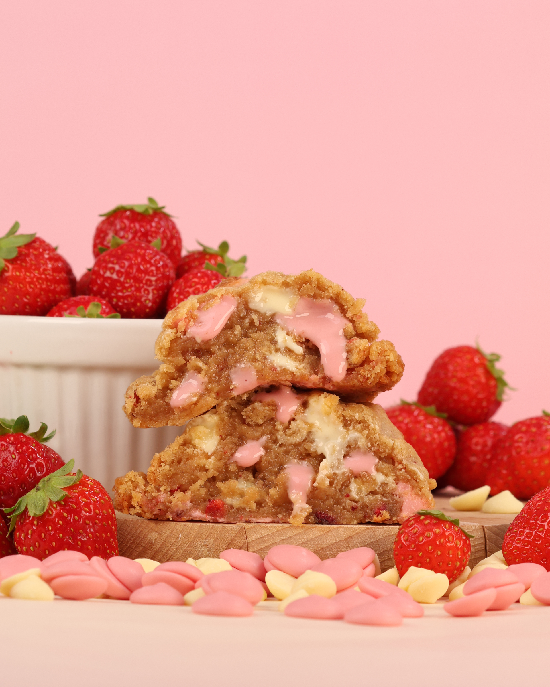 Gjord med jordgubbar, krämig vit choklad och exklusiv belgisk jordgubbschoklad.